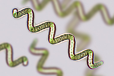 全長0.3~0.5mmの螺旋状の微細藻類で、高温・アルカリ性で生存するとされています。